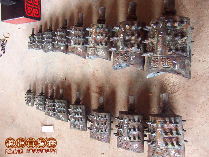 16件晉侯穌青銅編鐘,是我公司董事長(zhǎng)、工藝美術(shù)大師王蒲琴女士根據(jù)晉侯穌編鐘設(shè)計(jì)制作,編鐘外形按照晉侯穌編鐘設(shè)計(jì)制作,編鐘為青銅鑄造,采用國(guó)際標(biāo)準(zhǔn)樂(lè)音音高A=440Hz調(diào)音,可以旋宮轉(zhuǎn)調(diào)演奏古今中外樂(lè)曲,編鐘大梁采用優(yōu)質(zhì)松木制作,表面噴漆,彩繪花紋;另配有保管編鐘用的木箱,便于運(yùn)輸和儲(chǔ)存。