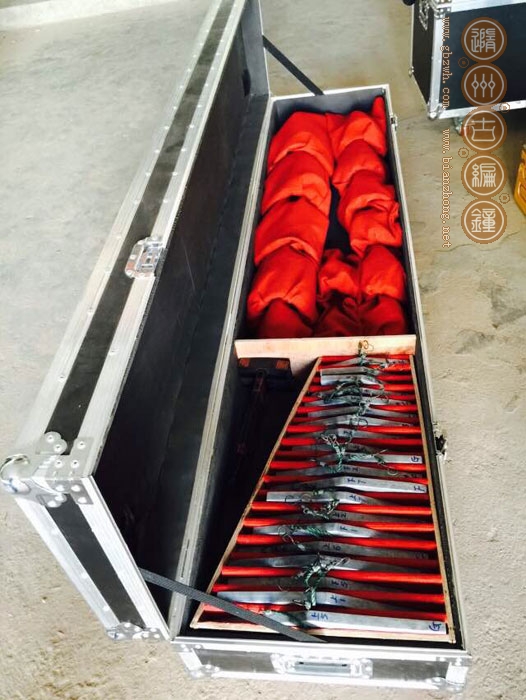 專門為13件漢式編鐘及20件漢式編磬配套的航空舞美道具箱,可用于航空運輸。